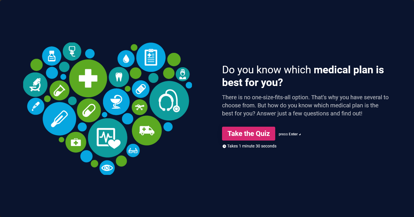 - “What’s in it for me” is for everyone. Consumers in general are growing more accustomed to personalization in their shopping experience. According to Forbes, 71% of consumers feel frustrated when a shopping experience is impersonal and 70% of millennials are frustrated with brands sending irrelevant emails. While many companies are externally focused on personalization, consider adopting that customized experience for your employees. Use segmentation to send versions of an email during Open Enrollment to target employees based on their level of engagement. For example, feature an interactive benefits quiz to help people determine which plan is best suited to their needs. This is a quick, fun tool that can easily be added to a benefits website, virtual event platform, landing page or as a QR code in an enrollment/benefits guide.